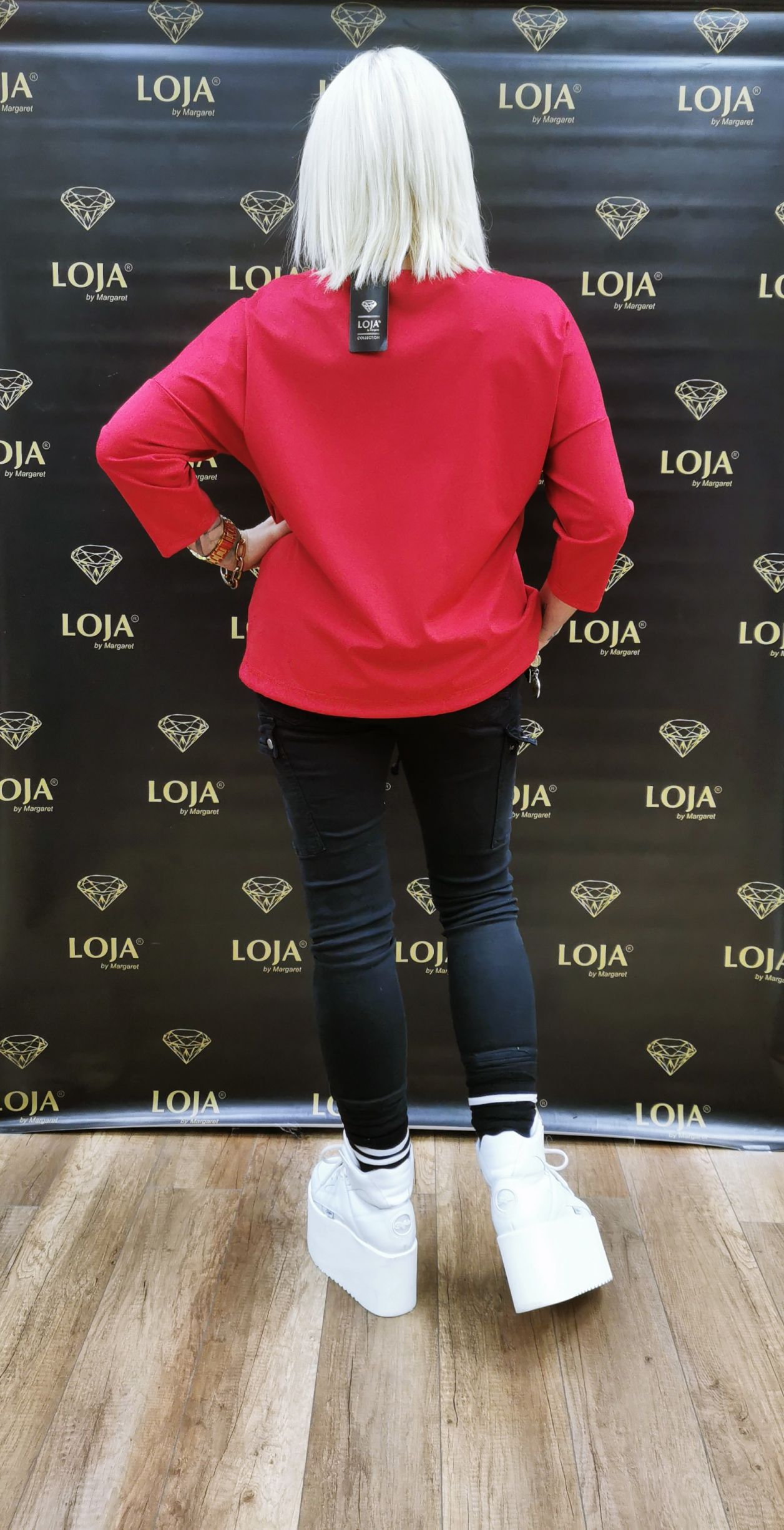 Bluzka w serek z kieszonką i sznurkami z eco- skórki.