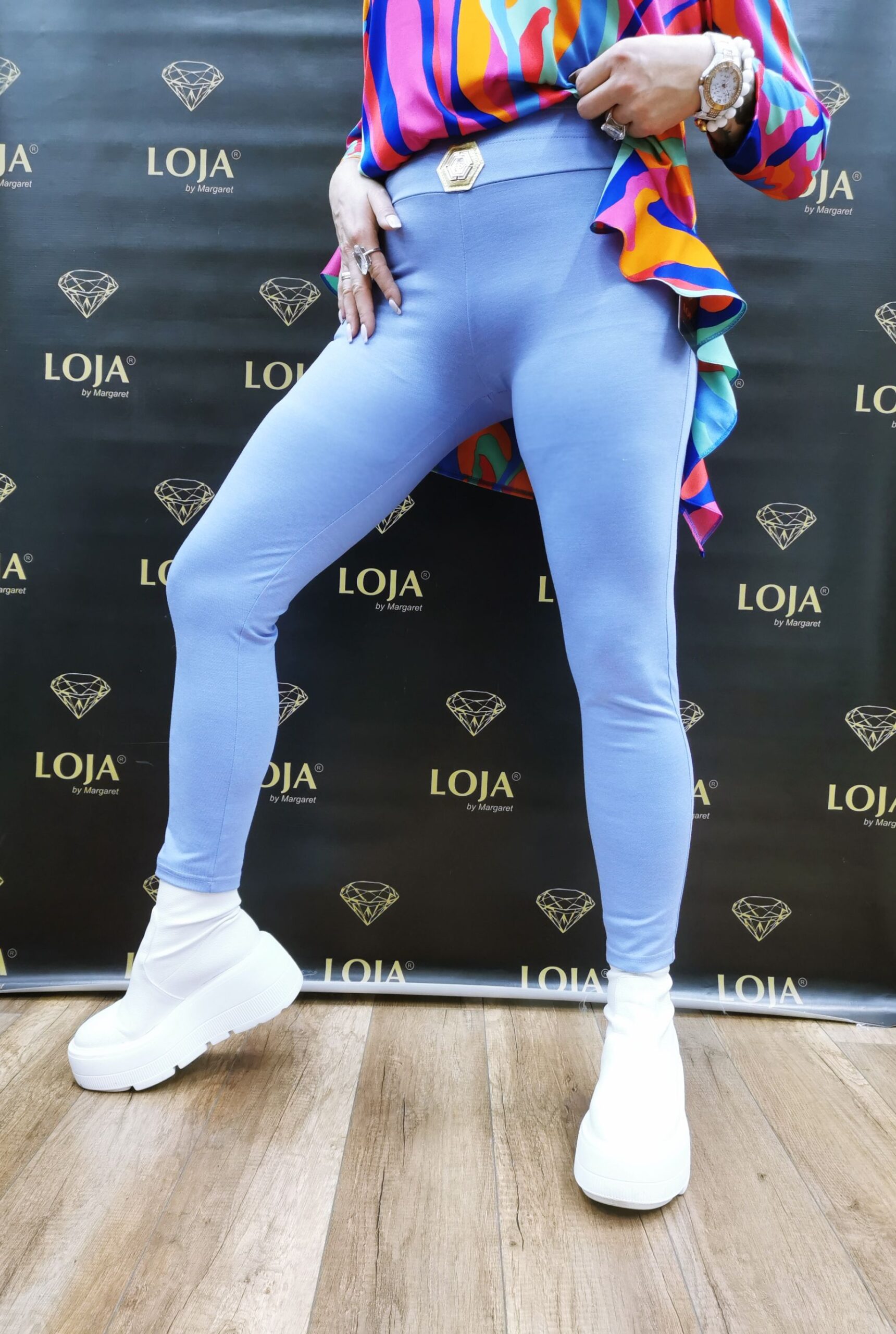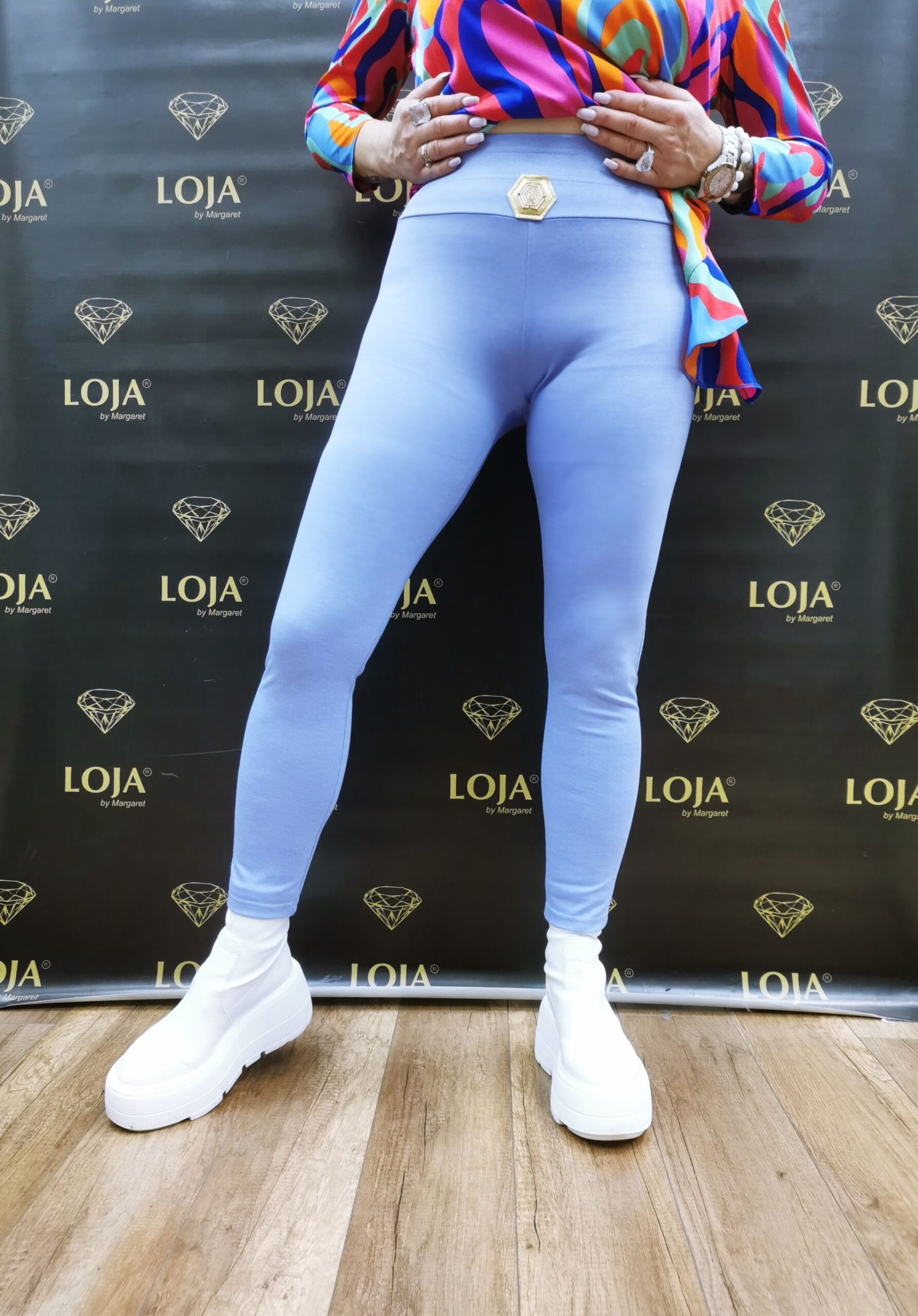 Leginsy w pięknym kolorze niebieskim z szerokim pasem są niezwykle wygodne, mają klasyczny, prosty krój i szeroki pas, który wysmukla talię. Właśnie te spodnie legginsowe założycie do wielu stylizacji.
