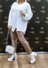 Taki sweter wygląda jak elegancka bluzka z długim rękawem. W swojej szafie warto mieć proste modele w odcieniach bieli oraz beżu.